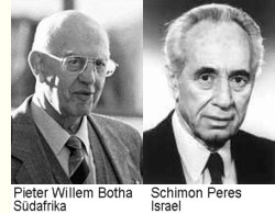 Die britische Tageszeitung 'Guardian' enthüllt in der Vorab-Veröffentlichung aus einem neuen Buch* des US-amerikanischen Wissenschaftlers Sasha Polakow-Suransky ein geheimes militärisches Abkommen, worin der heutige Präsident Israels Schimon Peres dem Staat Südafrika Atomwaffen zum Kauf angeboten hat. Die damalige israelische Regierung war zu diesem Deal offenbar bereit, um Uran für die eigene Atomwaffen-Produktion zu erlangen.